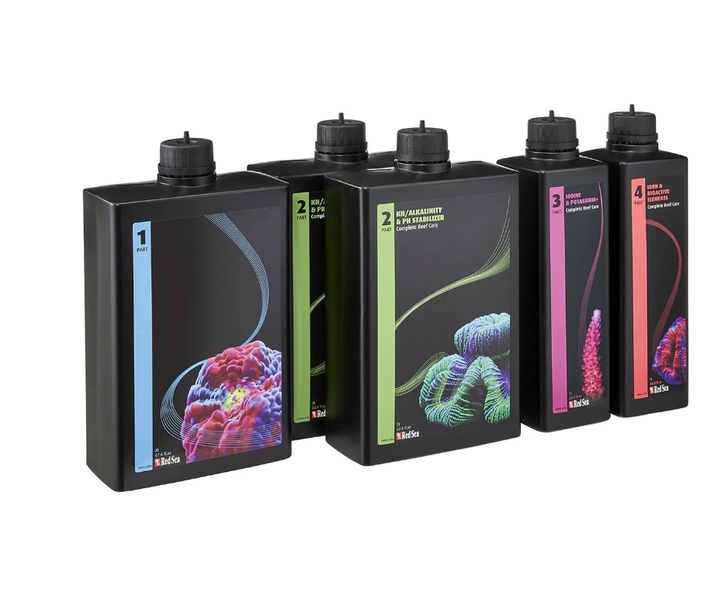 The new Complete Reef Care is based on Red Sea's 30 years of research into the needs of corals in artificial environments. It's a proven solution for optimal coral growth and coloration, providing you with a stunning and healthy tank. Complete Reef Care replenishes all 36 major, minor, and trace elements that get used up regularly by corals. These elements get used up in relatively predictable ratios, so Red Sea recommends testing calcium once per week to determine the dosages of all 4 parts.
