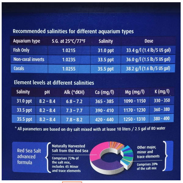 Red Sea Coral Pro vs Red Sea Salt (when mixed to 35 ppt salinity)